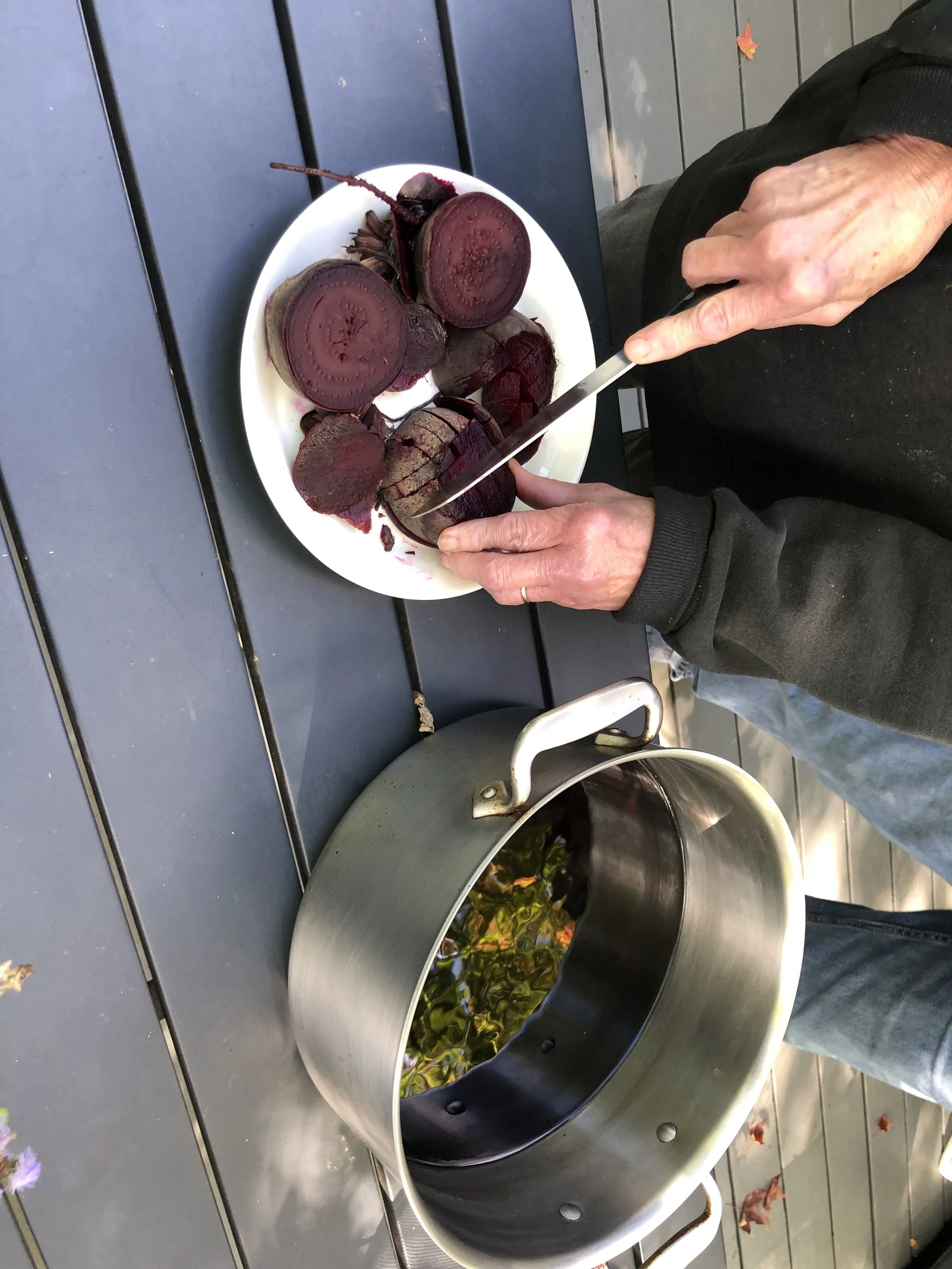 I pulled the sheets off the soaked towels, and laid them out in the warm autumn sun. The beet juice did not hold bond to the fibers; it rinsed through.