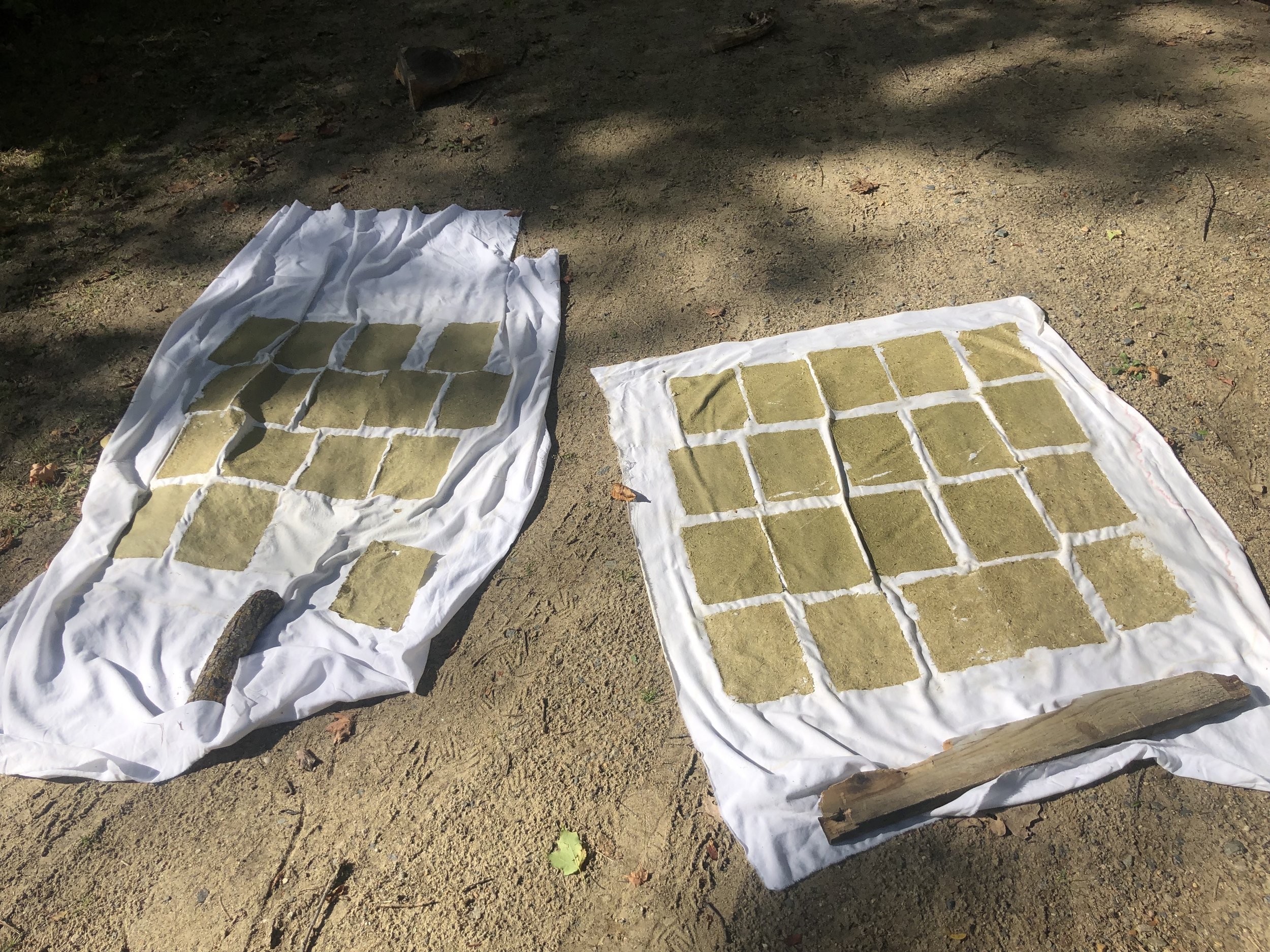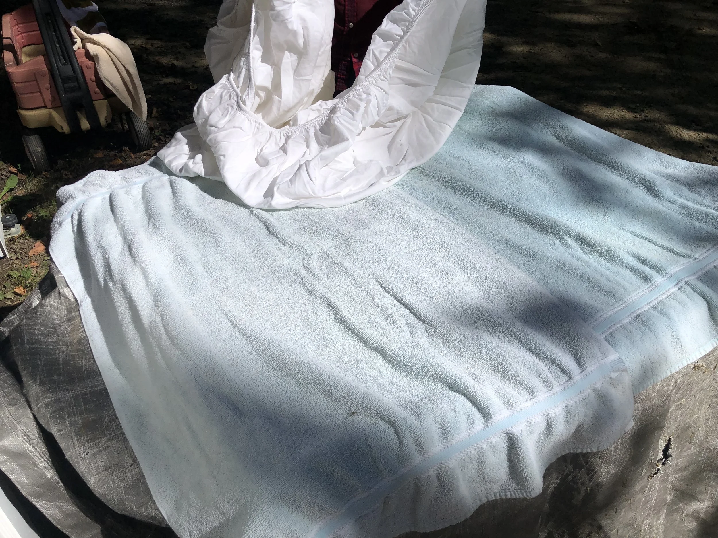 Once all my chemistry projects were complete, I prepared a bed to lay my paper on to dry—towels to soak up the water, and a sheet for the paper to sit on.