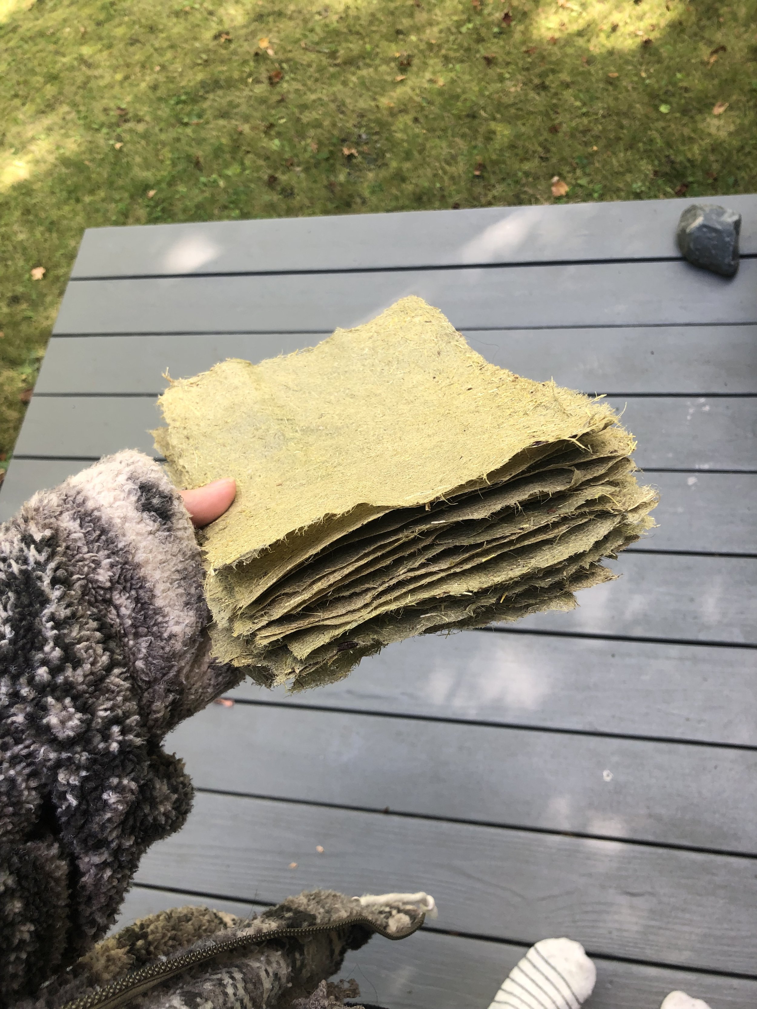 Determined to maintain my paper-making practice, I gazed off into the vast open grassland, and I decided it was time to attempt processing my own plant fibers to make paper.